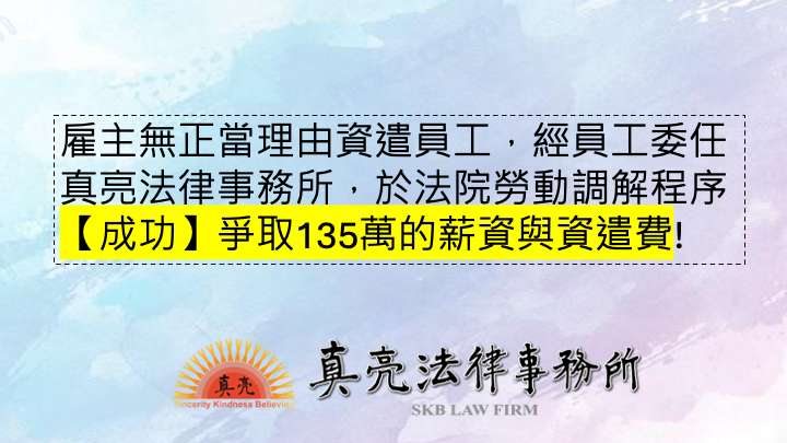 雇主無正當理由資遣員工,經員工委任真亮法律事務所,於法院勞動調解程序【成功】爭取135萬的薪資與資遣費!